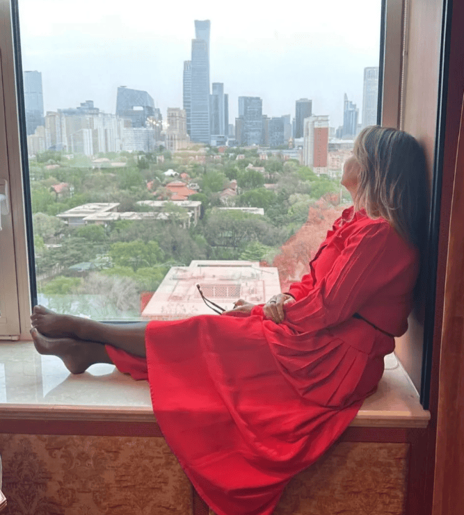 礼服是罗桑杰拉展现文化交融的画布。2025 年莫斯科纪念卫国战争胜利 80 周年庆典上,她穿一袭大弧形圆领的银色礼服,裙摆刺绣着俄罗斯套娃与巴西木棉的共生图案 —— 以此致敬自己的俄罗斯血统。而在中国故宫拍摄的肖像中,她身着红裙,裙身印着水墨竹纹与巴西鹦鹉的组合纹样,