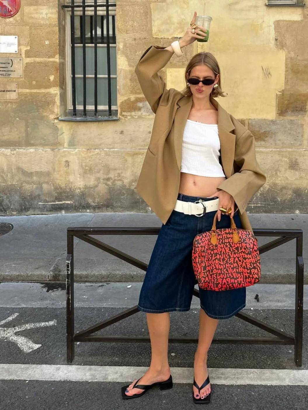 这个夏天,试试 “裤子短一半”:用牛仔五分裤搭西装,用卡普里裤撞运动风,用百慕裤配衬衫。