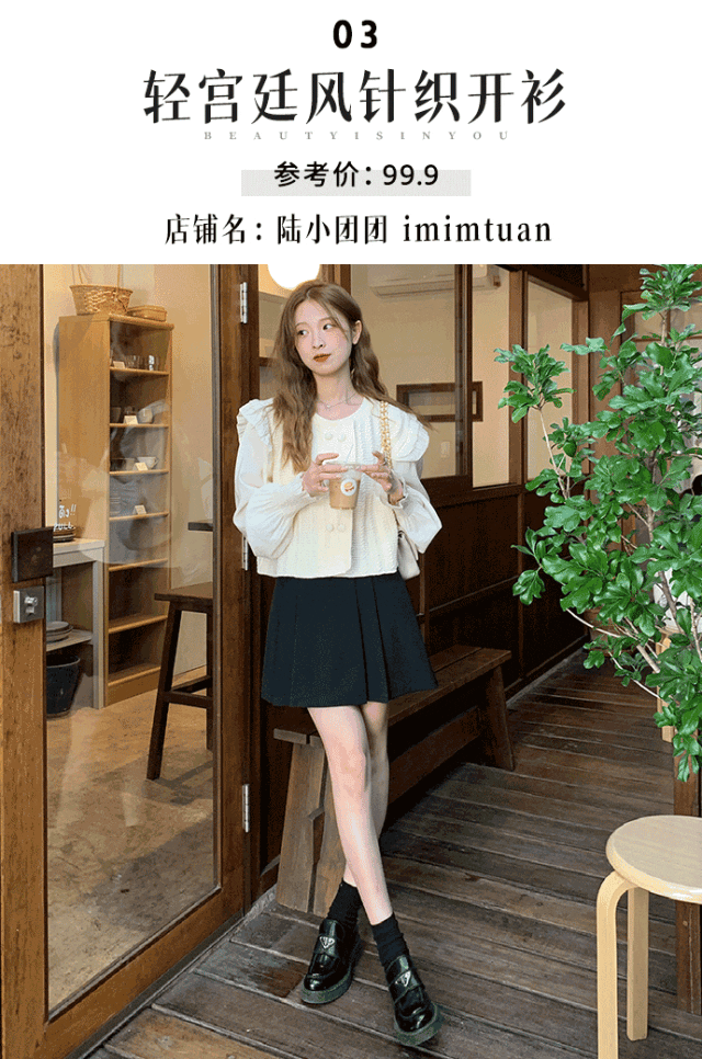 这家店的衣服很多都是软软糯糯的小女生风,我可爱了!米白米白的颜色加上荷叶边,咱们就是说一整个温柔住了奥。