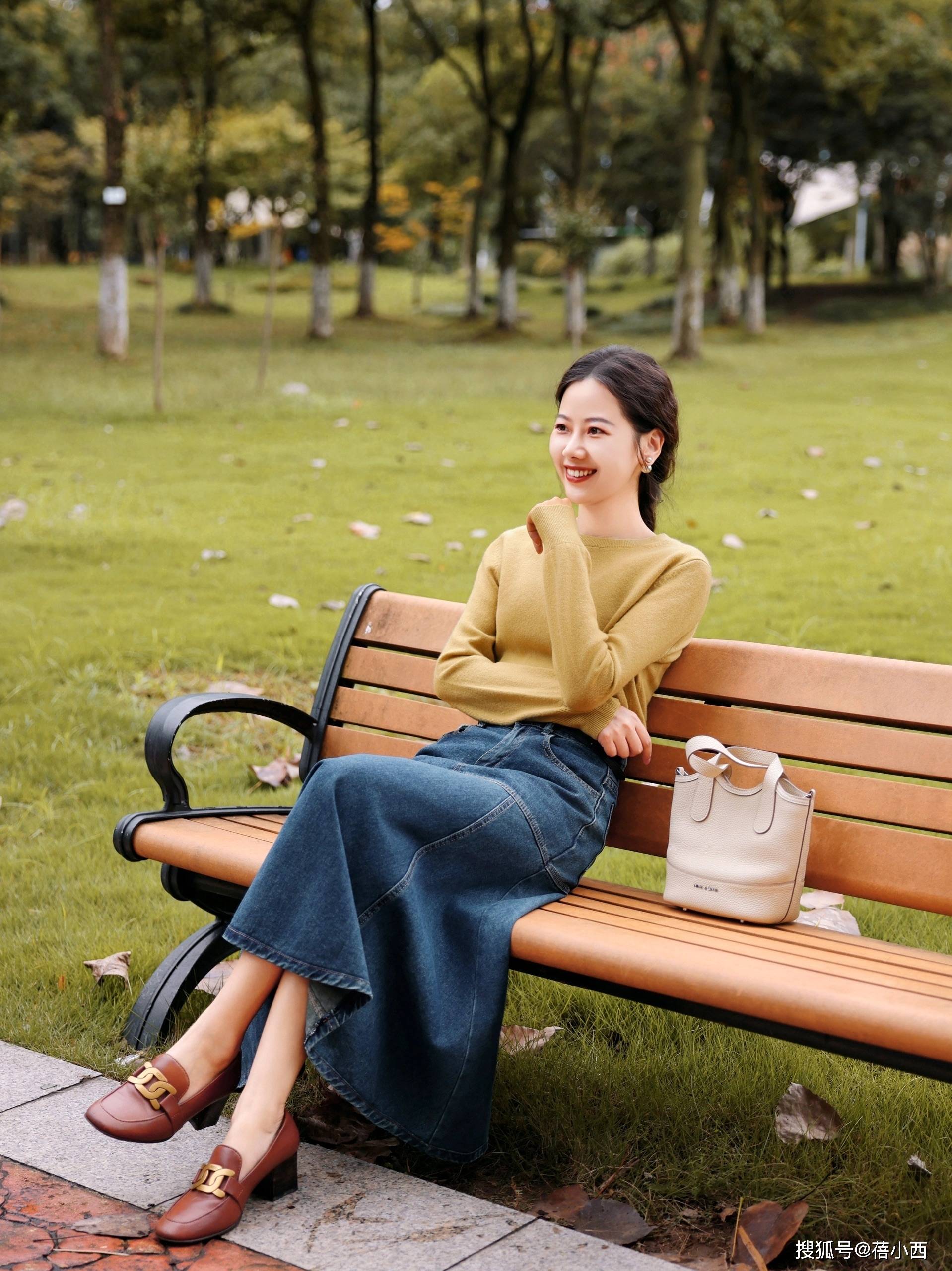 当繁忙的生活笼罩了你的每一天,不妨穿上一件姜黄色针织衫,搭配牛仔半身裙,硬朗与柔软的材质碰撞出无尽的时尚感。这不仅是视觉上的碰撞,也是你与世界对话的方式。棕色粗跟乐福鞋,稳稳地支撑着每一步,让你的气质更加干练与知性。