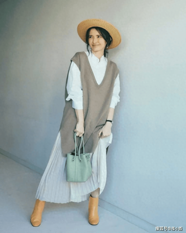 在这纷繁复杂的世界里,搭配的艺术便在于懂得取舍。穿搭的色彩搭配如果不小心,便可能引来一场“灾难”;但如果得当,它便是一种视觉享受,也是一种情感的流露。白色衬衫与米色百褶裙的单调搭配,轻巧地披上一件浅咖色的针织背心,既是保暖的选择,又能增添一层层次感。无心的配饰,如小草帽与浅黄色短靴的搭配,更是从大自然中汲取灵感,带来了无与伦比的舒适感。