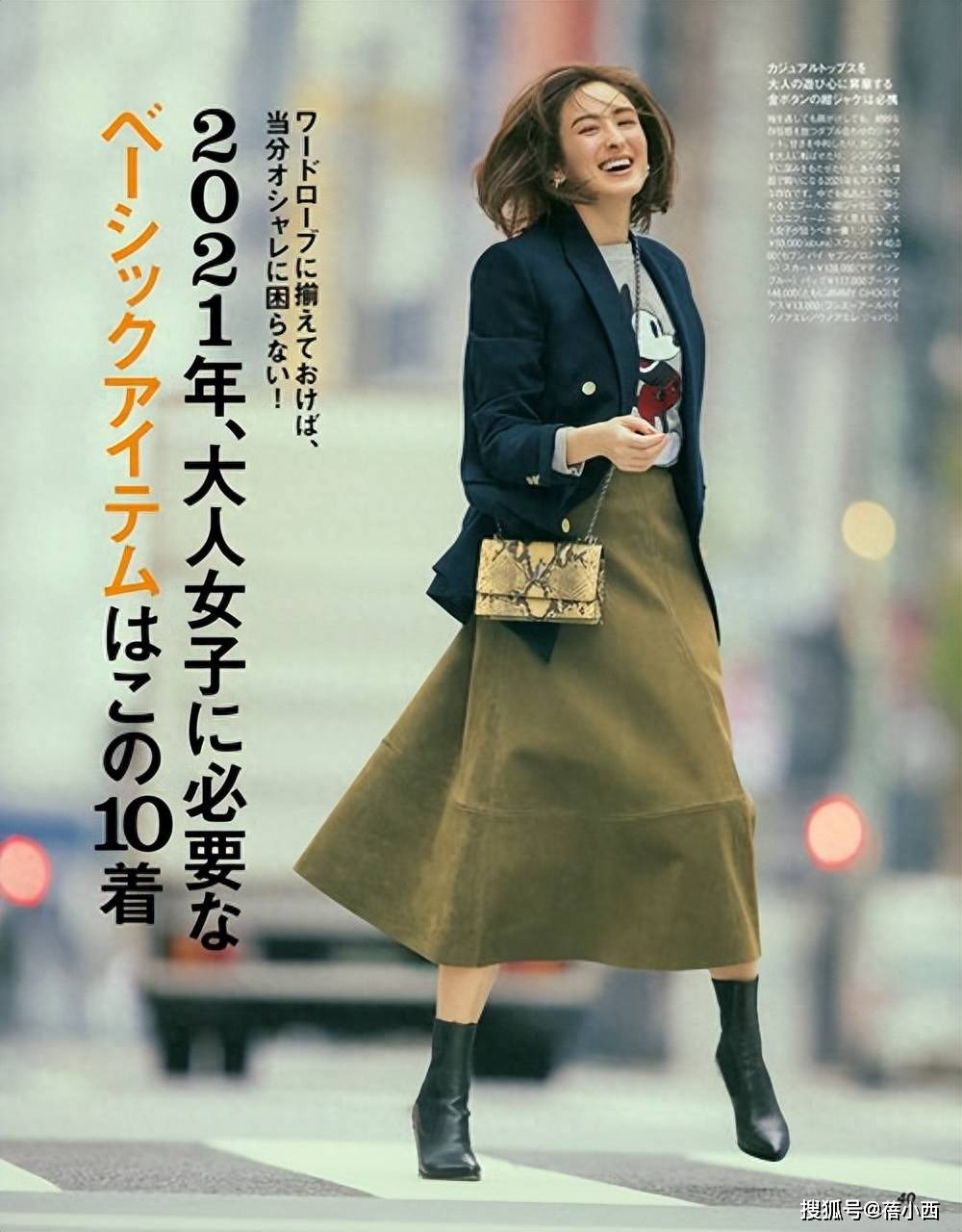 黑色西装和军绿色半身裙的搭配,仿佛给人一种轻熟的美感。加上一双黑色短靴,再提上一只蛇纹链条包,你便是城市街头的一道风景。每走一步,仿佛都能在宽阔的街道上拍出一幅幅大片,随意的动作都充满了自信与自由。