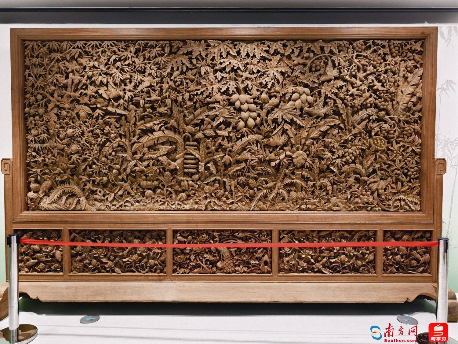林肯提到展厅里的一件“镇馆之宝”,一件重达500公斤的潮州木雕作品,“这里面可以看到很多的热带水果、植被,我们用了八个人才把它组装起来,放到展厅里,非常震撼。”