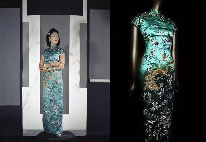 ▲ 纽约大都会艺术博物馆“2015年服饰学会大展”主题为:“中国:镜花水月”(China: Through the Looking Glass)。这次展会中,有一件做工极其精美的中式旗袍,出品于1932年,标签上写道:这是 1976年由顾维钧夫人赠送给了纽约大都会艺术博物馆的礼物,即为黄蕙兰曾经穿过的旗袍。